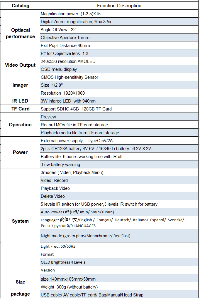 Multiple display modes: Night vision goggles often have different display modes, such as black and white mode and color mode. These modes can be selected based on the usage environment and personal preference.
